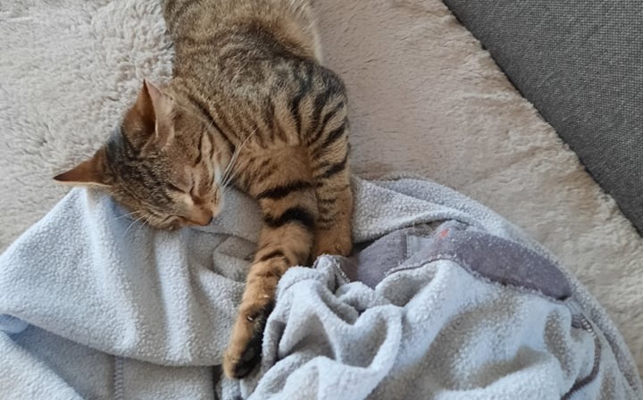 Bilbo je imel komaj 400 gramov, ko se je od kdo ve kod znašel pri hiši najditeljev. Imel je srečo, da so mu ti ponudili pomoč in je lahko zrasel v lušnega mačjega dečka. Je prijazen. nežen muc. Obožuje in potrebuje mačjo družbo, zato se oddaja izključno v dom, kjer je že doma kakšen prijazen muc ali pa v paru s